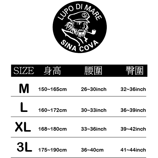 尺寸:M / L / XL / 3L / 4L / 5L(身高腰圍請對照圖內)